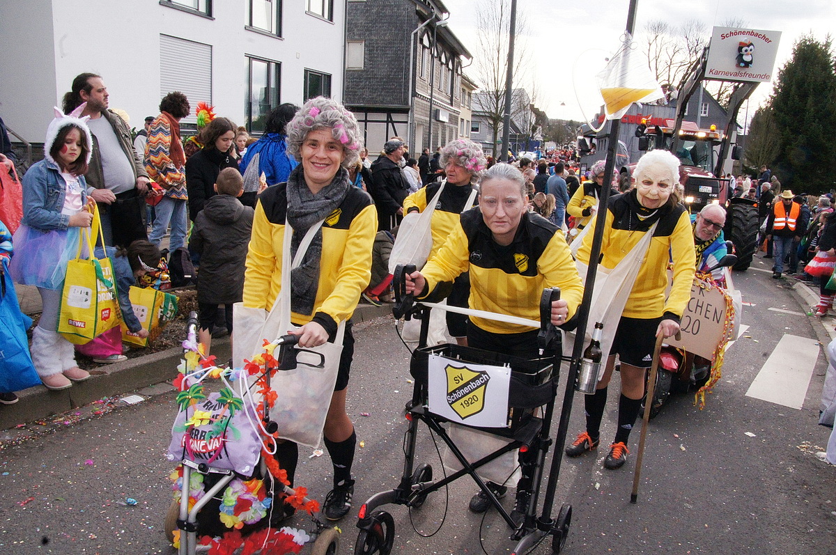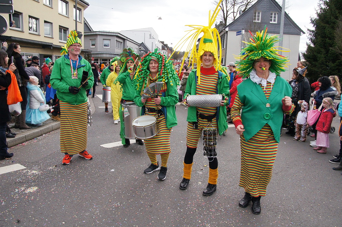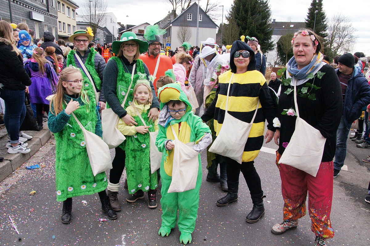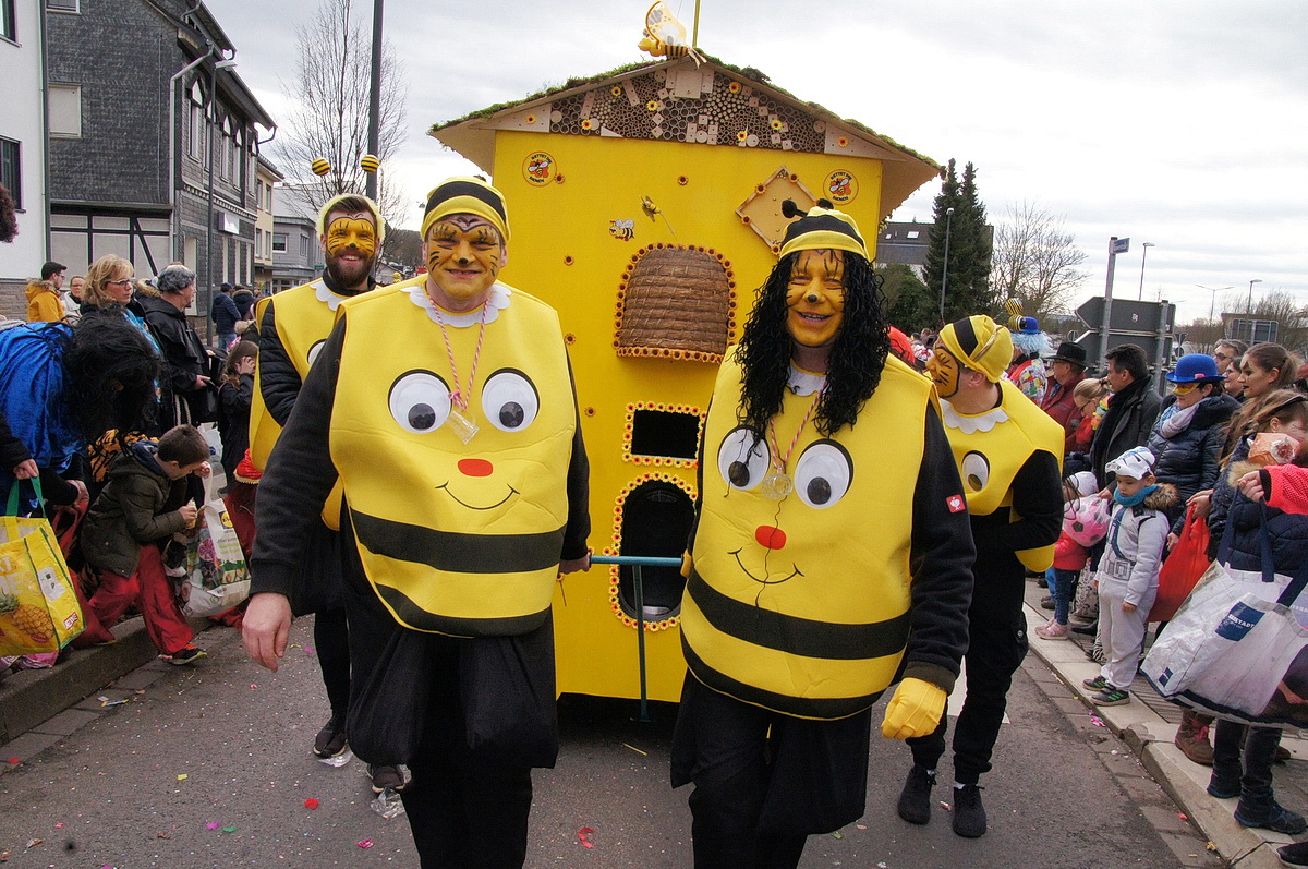 Als nicht zu übersehende, knallgelbe Bienen marschierte die Dorfgemeinschaft Niederhausen im Karnevalszug. Einen Hauch brasilianischen Karneval brachte die Gruppe „Samba Wind“ nach Waldbröl, die mit ihren farbenprächtigen Kostümen und Sambaklängen begeisterten. Die Karnevalsvereine Morsbach und Schönenbach feierten natürlich im Waldbröler Karnavalszug mit. Die KG Wildberg hatte erst gestern ihre eigene Prunksitzung gefeiert und war heute mit ihrem weiblichen Dreigestirn, ihrem Gefolge und der Garde im Zug vertreten.