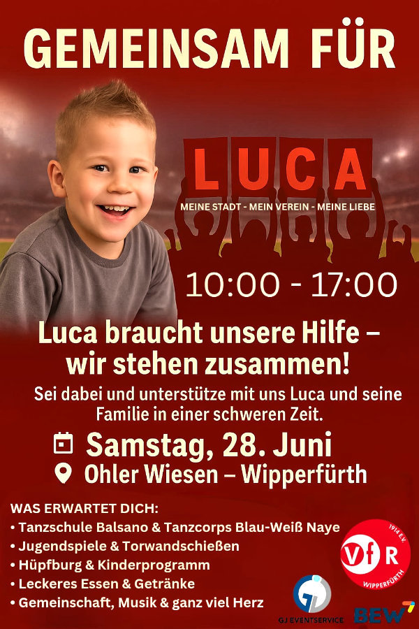 Wipperfürth – Benefizveranstaltung des VfR Wipperfürth zugunsten des schwer erkrankten Luca findet am kommenden Samstag statt.