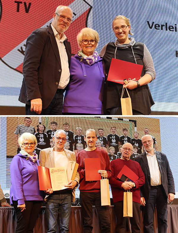 Moderator Uli Becker führte mit Charme und Witz durch das abwechslungsreiche Programm mit seinen zahlreichen Ehrungen und Auszeichnungen. Die Medaillen und Urkunden wurden von Monika Breidenbach, ihrer Stellvertreterin Leslie Kamphuis und Heribert Berster zunächst an Mannschaften und Athleten der Vereine überreicht. Nach einer mitreißenden Showeinlage der Show- und Gardetanzgruppe „Spark Dancers“ des VfB Kreuzberg folgte die Verleihung der Verdienstnadeln an ehrenamtliche Helfer und Unterstützer, die von den Vereinen vorgeschlagen wurden.