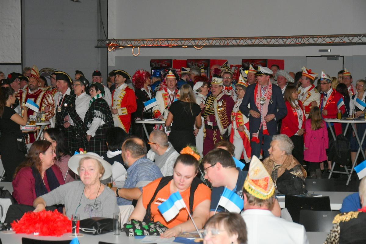 Bernd Köllner hatte die Moderation übernommen, da der Vorsitzende Rüdiger Clever daheim mit einer Grippe das Bett hüten musste. Er freute sich an diesem Abend neben zahlreichen Gästen auch Vertreter und Abordnungen befreundeter Vereine begrüßen zu können, die teilweise ihre Tollitäten mitgebracht hatten. Unter anderem waren die KG Baulemann Anno Pief, der KV Fenke, das fröhliche Dreigestirn des Dabringhausener Festausschuss mit Prinz Mario, Bauer Marcus und Prinzessin Samira, die Hanse Husaren, die Dünnsche Jecken, die KG Dreispitz und die KG Rua Kapaaf aus Radevormwald vertreten. Auch Wipperfürths Erster Bürger, Michael von Rekowski, der im Laufe des Abends die Proklamation durchführen sollte, war zeitig angereist.