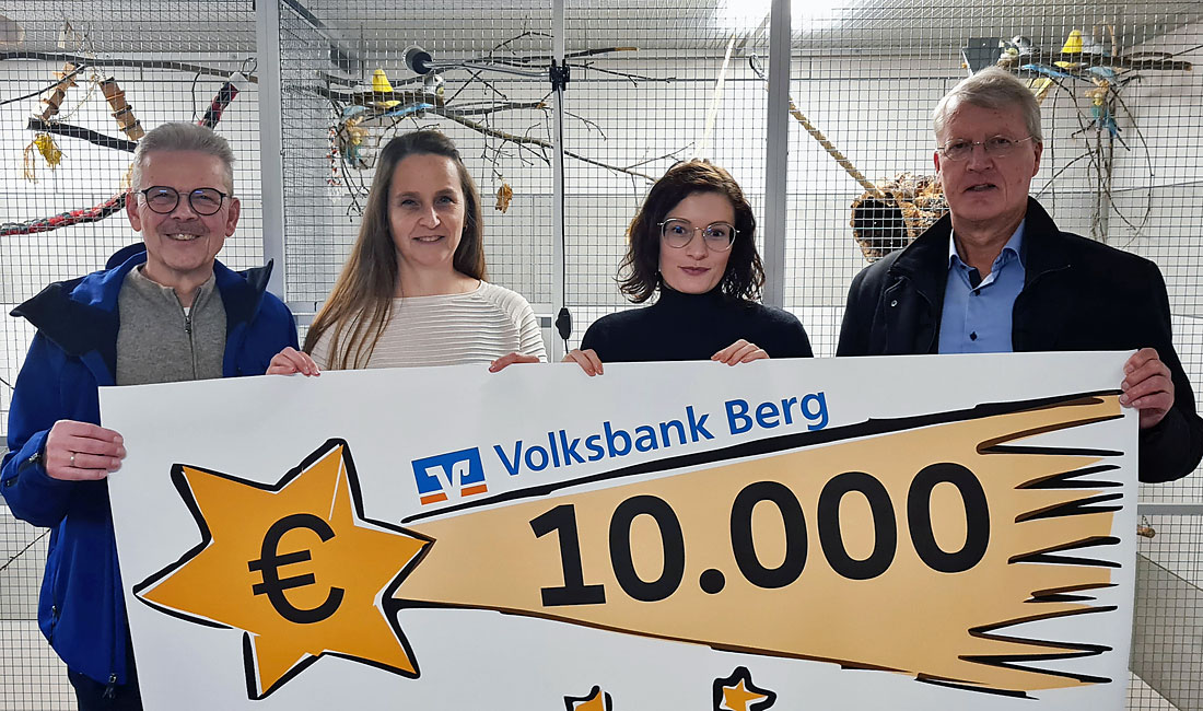 Um die angespannte finanzielle Lage des Tierheims in Wipperfürth etwas zu lindern, spendet die Volksbank Berg aus den Reinertragsmitteln des Gewinnsparvereins eine Summe von 10.000 Euro an den Tierschutzverein Wipperfürth. Vorstandsmitglied Helmut Vilmar, und Karen Hielscher, Regionalleiterin in Wipperfürth und Lindlar, überreichten den symbolischen Scheck an die Vorsitzende des Tierschutzvereins Wipperfürth, Nadine Hühnerbach, und den 2. Vorsitzenden Hans-Willi Heller.