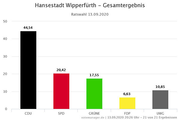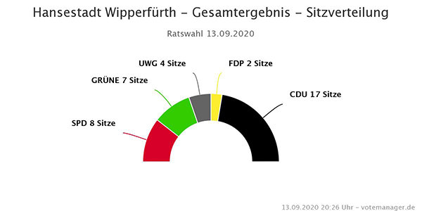 Wipperfürth - Hier finden Sie aktuell die Ergebnisse der Kommunalwahl 2020 für die Stadt Wipperfürth mit sämtlichen Zahlen und Fakten - auch aus den einzelnen Wahlbezirken.