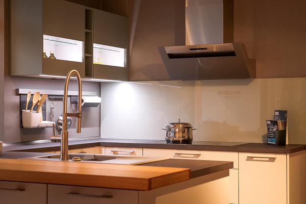 Auf mehr als 350 m² erhalten Sie einen Einblick in vielfältige Musterküchen. Jede in ihrem eigenen Stil, mit ansprechendem Design und pfiffigen Detaillösungen. Ebenfalls stehen Ihnen hier unsere Fronten-, Griff- und Arbeitsplattenmuster zur Verfügung, die Sie nach Lust und Laune vergleichen können. Auch unterschiedliche Modelle verschiedener Elektrogeräte Hersteller haben hier Ihren Platz. Vergleichen Sie z. B. vor Ort Spülmaschinen, Backöfen und Kochfelder von SIEMENS und MIELE oder lassen Sie sich von Herstellern wie BERBEL oder GAGGENAU überzeugen. Unsere Küchenexperten helfen Ihnen gerne weiter!