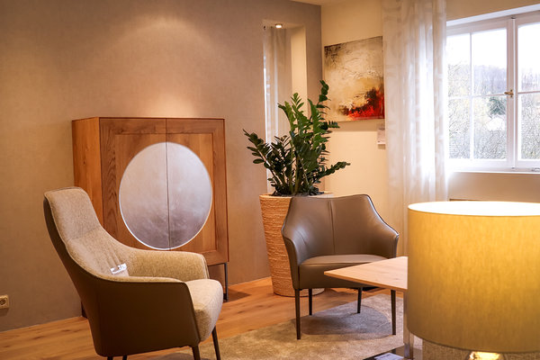 Wer gerne seinen Eingangsbereich neugestalten möchte, wird hier direkt fündig, denn wir zeigen hier verschiedene Dielenmöbel von WK WOHNEN. Sofas von BRÜHL, Couch- und Beistelltisch von ROLAND SCHMITT und TEAM 7, Möbel für Ihr Home-Office und vieles mehr, erwartet Sie ebenfalls in diesem Bereich des Einrichtungshauses. Von dem deutschen Hersteller INTERLÜBKE zeigen wir hier ein Schlafzimmer und aktuelle Wohnmöbel. Renoviert wurde auch der Schaufensterbereich, der mit einer Kombination aus Schlafzimmer und Garderoben von SCHÖNBUCH eingerichtet wurde. Auch Sessel mit Aufstehhilfe haben hier ihren Platz gefunden und können gerne getestet werden.